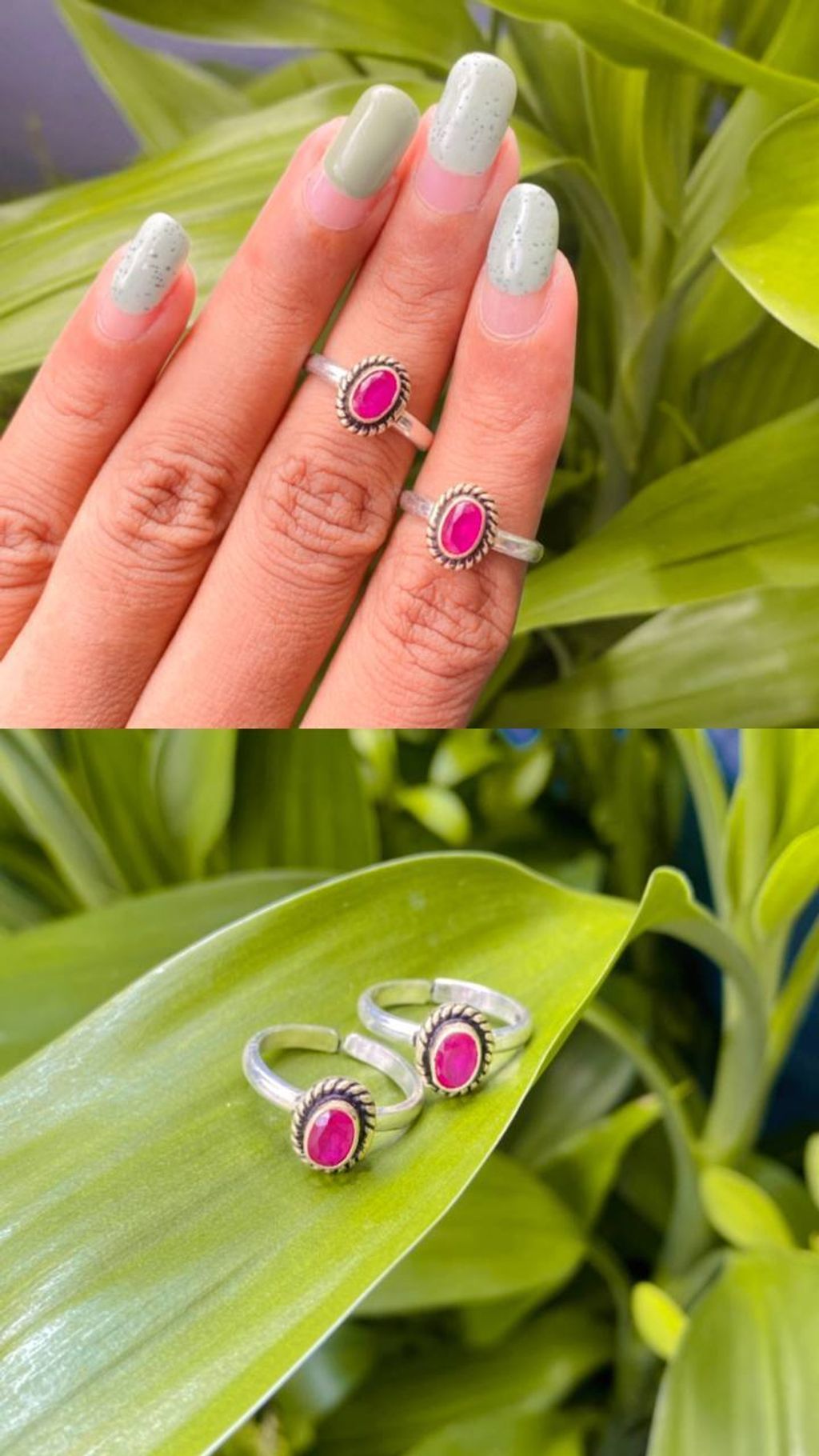 Pure silver oxidized finish with cut stone toe ring